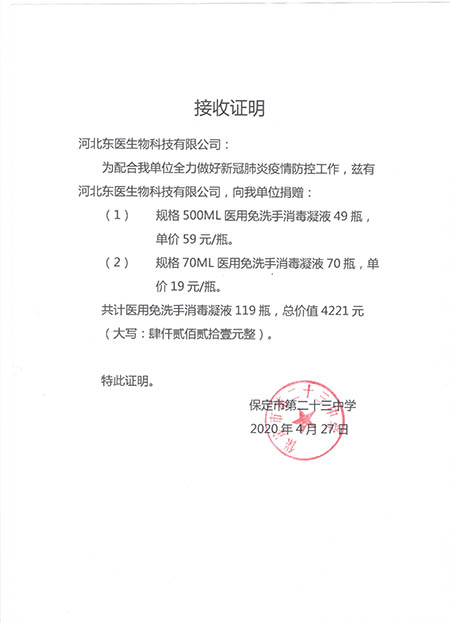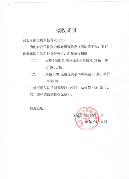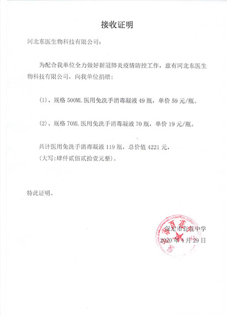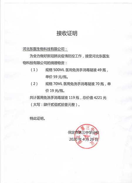 在本次新冠肺炎疫情期间,作为河北省工信厅(第四批)疫情防控重点保障物资生产企业,保定市应对新型冠状病毒感染的肺炎疫情工作领导小组物资保障组,保定市发改委疫情防控重点保障物资生产企业,保定市政府消杀用品定点采购单位――东医生物积极捐赠消杀防疫物资,为以下系统及单位进行捐赠: 1,保定市区及22个县学校教育系统, 2,保定市第五医院,望都红十字会等卫生医疗系统 人妻仑乱少妇A片, 3,保定火车站,客运中心等交通运输系统, 4,保定市科技局,交通局,卫健委等政府机关及数十家企事业单位, 累计捐赠免洗手消毒凝胶市场价值总计200余万元。